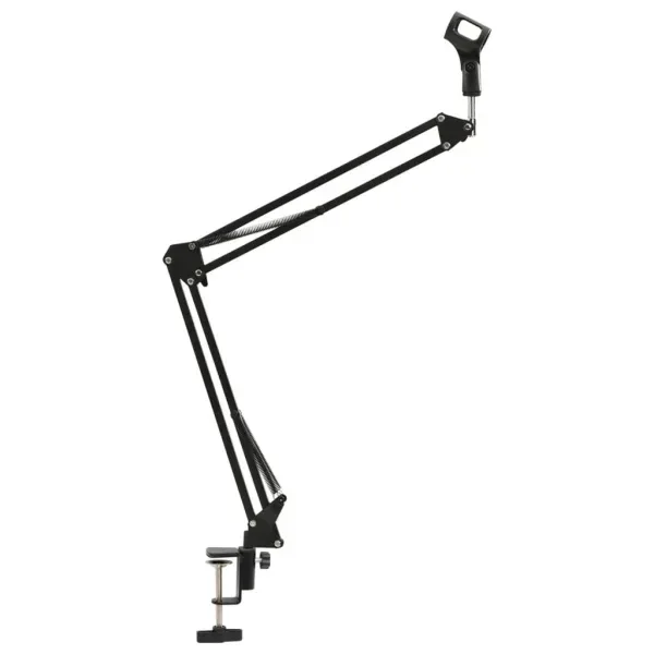 Gemaakt van zwaar staal en uitgerust met een supersterke veer, wordt de microfoonstandaard gekenmerkt door een stabiele en stevige constructie en kan zwaarder gewicht dragen. Met een verstelbare schaararm kunnen de hoek en hoogte van deze standaard eenvoudig worden aangepast om aan uw verschillende werkbehoeften te voldoen. Bovendien is de microfoonstandaard uitgerust met een tafelklem en kan deze eenvoudig en veilig op een tafel worden bevestigd.