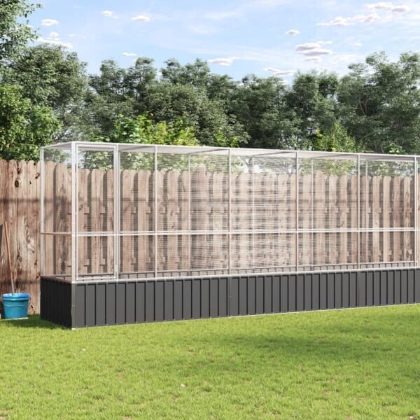 - Stevig frame: Staal is een uitzonderlijk hard en sterk materiaal. Het biedt stevigheid en stabiliteit. Galvanisatie biedt betere bescherming tegen corrosie en is handig voor producten die zowel buiten als in zware omstandigheden worden gebruikt. Dankzij de stevige constructie van gegalvaniseerd staal is deze vogelvolière gebouwd om lang mee te gaan.