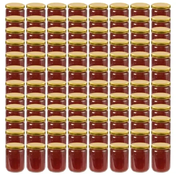 Glazen jampotten met gouden deksel 96 stuks 230 ml