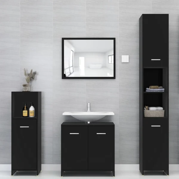 4-delige badkamermeubelset zwart bewerkt hout (802580+802589+802598)
