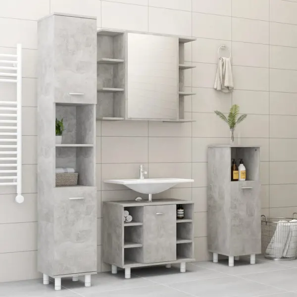 4-delige badkamermeubelset betongrijs bewerkt hout (802610+802619+802628+802637)
