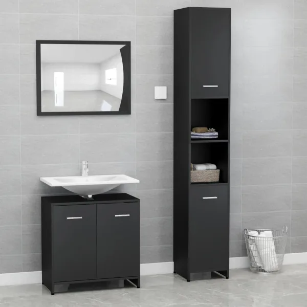 3-delige badkamermeubelset zwart bewerkt hout (802580+802598)