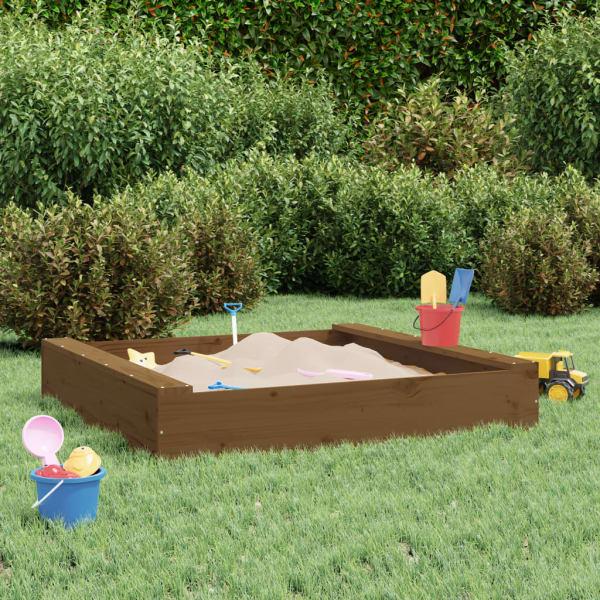 Zandbak met Zitjes Honingbruin Vierkant Massief Hout Dennenhout
