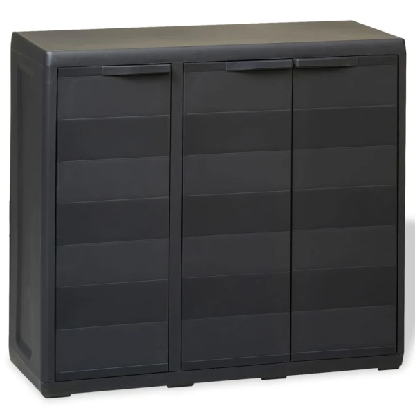 Onze hoogwaardige opbergkast is ideaal voor het ordenen en opbergen van uw huishoudelijke benodigdheden, gereedschap of andere spullen in de tuin, op het terras, etc. Deze kast past bij elk interieur dankzij het tijdloze design.