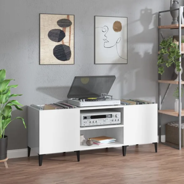 Platenkast Hoogglans Wit 121x38x48 cm Bewerkt Hout