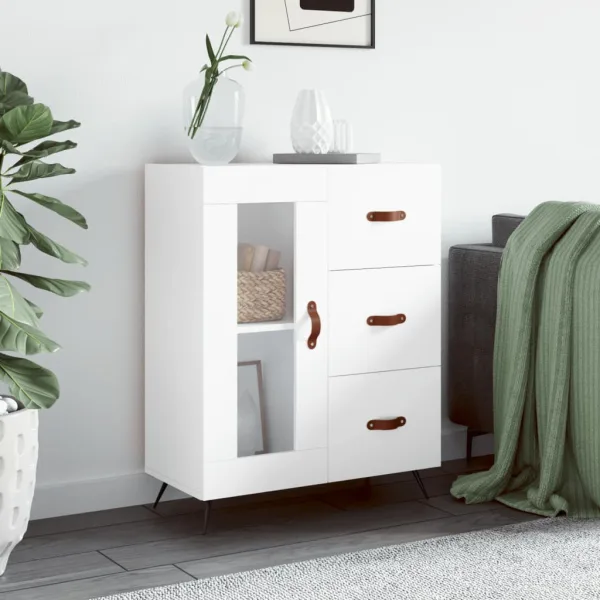 - Ruime opbergruimte: Met 3 lades en 2 compartimenten achter de glazen deur biedt het dressoir voldoende ruimte om uw dagelijkse benodigdheden geordend en binnen handbereik te houden.