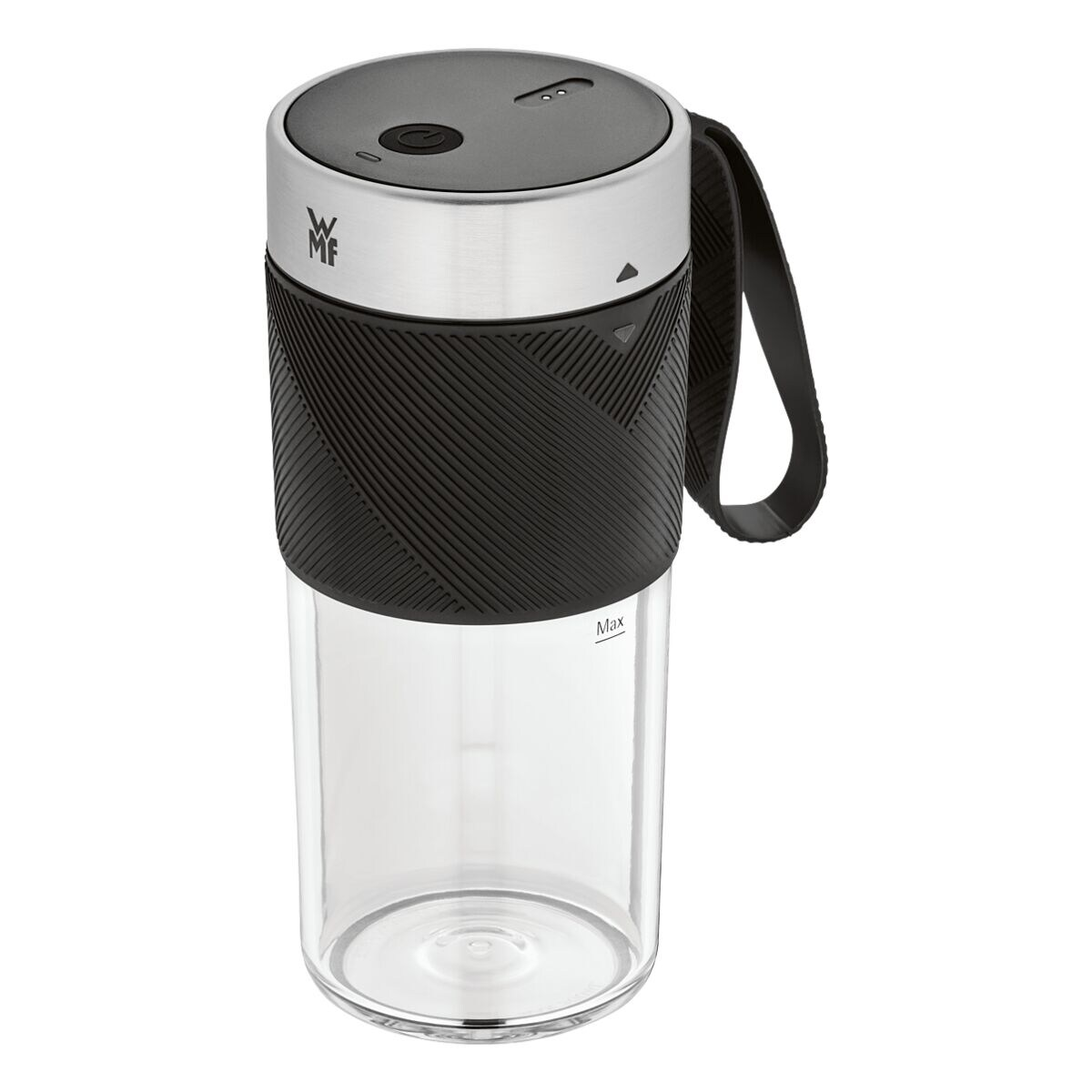 compacte smoothieblender op batterijen, tot tien mengprocessen per batterijlading, vermogen: 50 W, voeding: 1.200 mAh lithium-ion batterij, motorvermogen: 20.000 tpm, capaciteit: 0,3 L, aantal messen: 2, bijzonderheid: automatische uitschakeling, materiaal: kunststof / glas, glasmateriaal: tritan, kleur: zilver / zwart, inhoud per verpakking: 1 Smoothie Blender, USB-kabel en netadapter