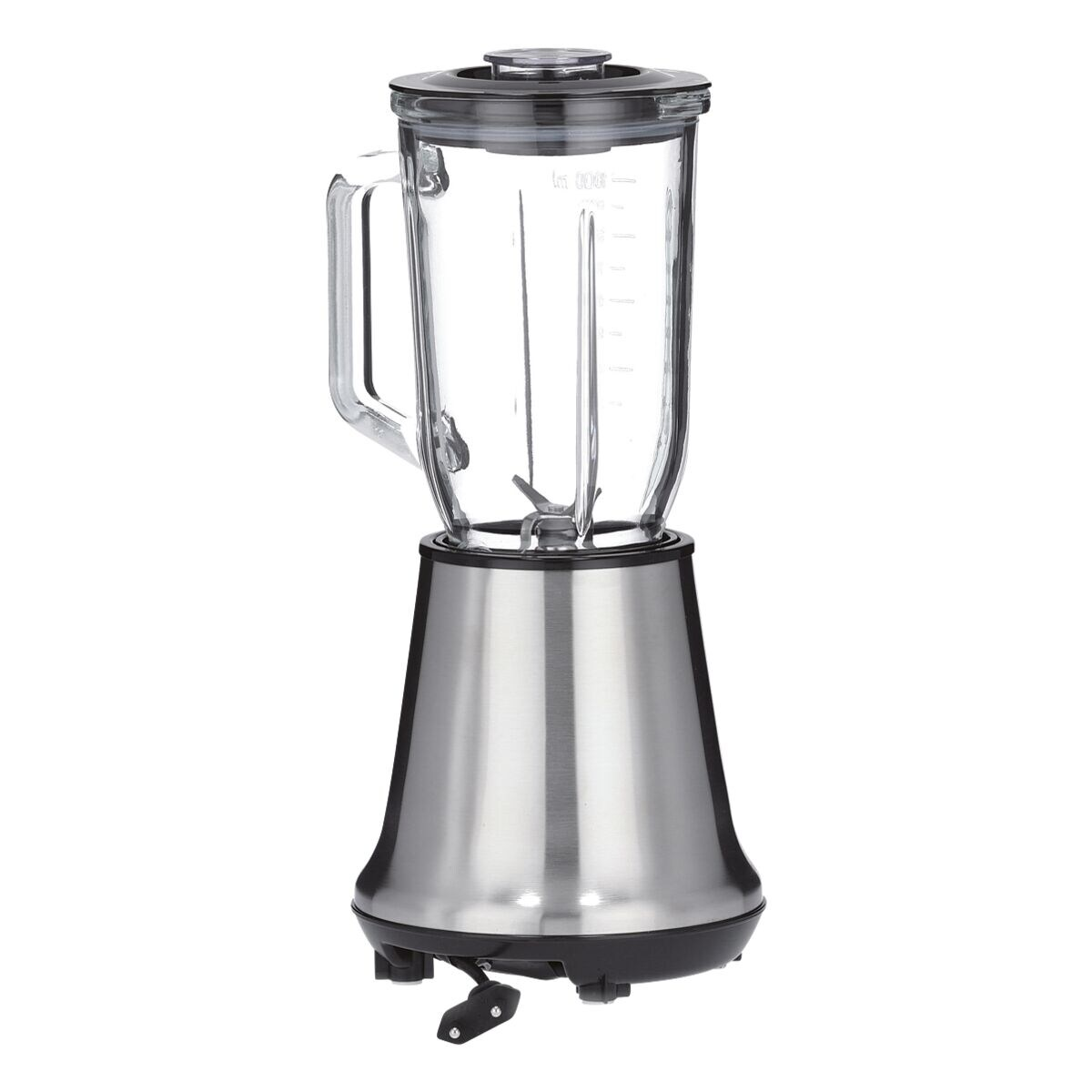 uitvoering: 2 snelheidsstanden, functies: pulsregeling (max. 22.000 tpm) / ijsvergruisfunctie, afneembare glazen kan met schenktuit, deksel met bijvulopening, geïntegreerde maatbeker, roestvrijstalen mes, op antislip rubberen voetjes, inhoud: 1 liter, stroomvoorziening: netvoeding, vermogen: 500 W, veiligheid: anti-slip / veiligheidsuitschakeling, materiaal: roestvrij staal, kleur: zilver, leveromvang: blender