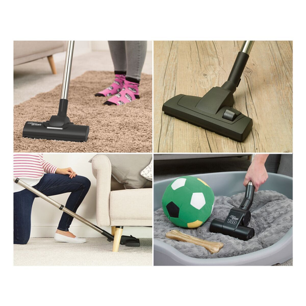 Stofzuiger »HENRY Petcare HPC160-11«, krachtige universele stofzuiger voor het verwijderen van dierenharen van harde vloeren, vloerbedekking en meubels, uitvoering: met zak, effectieve opname van dierenharen dankzij langlevende industriemotor uit de professionele schoonmaak, reductie van geurtjes door premium actief koolfilter »MicroFresh«, max. stofopvangvolume: ca. 6 liter, stofvrij leeg te maken, snoerlengte: 10 m, met zeer grote reikwijdte voor grote ruimtes, design in typische ronde »HENRY«-vorm met print van gezicht, zuigkracht: 2.300 mmWS, met 2 grote en 2 kleine wielen, rondom zachtestootring beschermt deuren en meubels tegen beschadigingen, met draaggreep, parkeerfunctie, snoeroprolsysteem in de motorkop en accessoire houder, vermogen: 620 Watt, levering met turbo vloermondstuk »AiroBrush« (270 mm), hand mondstuk »AiroBrush« (140 mm), stevige roesvrijstalen pijp (3-delig), zuigslang »FloMax« (2,2 m), om te schakelen combi-vloermondstuk »HiPro« (270 mm), voegen mondstuk, meubelmondstuk met borstelopzet, meubelborstel, slangadapter, 1 vlies stofzuigerzak, kleur: groen