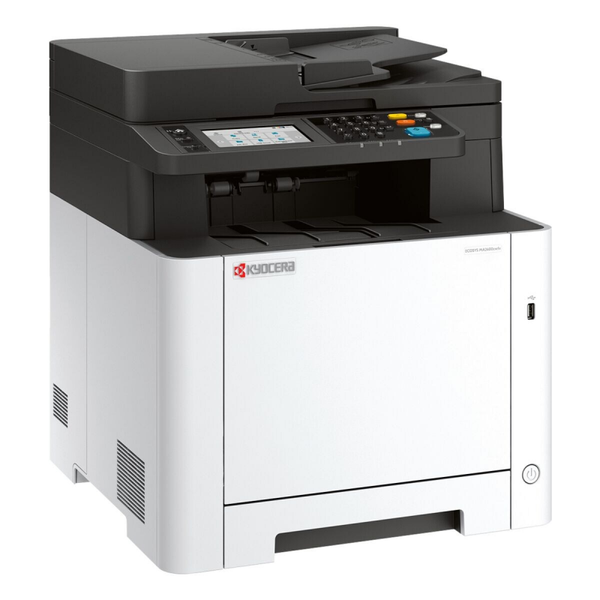 Multifunctionele printer »ECOSYS MA2600cwfx«, multifunctionele apparaatfuncties: 4-in-1: printen, scannen, kopiëren & faxen, type display: 6,8 cm kleurenaanraakscherm, max. resolutie (zwart-wit/kleur): 1200 x 1200 dpi, printsnelheid (zwart-wit / kleur): 26 / 26 ppm, max. documentformaat: A4 afdrukken, papiercapaciteit: 250 bladen (80 g/m²), automatische documentinvoer (ADF) capaciteit: 50 bladen, dubbelzijdig afdrukken: automatisch, mobiel afdrukken: Apple AirPrint / Kyocera MobilePrint App / Mopria, kleur: grijs, afmetingen, cm (B/D/H): 41,7/42,9/49,5, gewicht: 26 kg, leveromvang: toner voormaximaal 1500 pagina's (ISO) in zwart, cyaan, magenta en geel / snelstartgids / veiligheidsinstructies / netsnoer