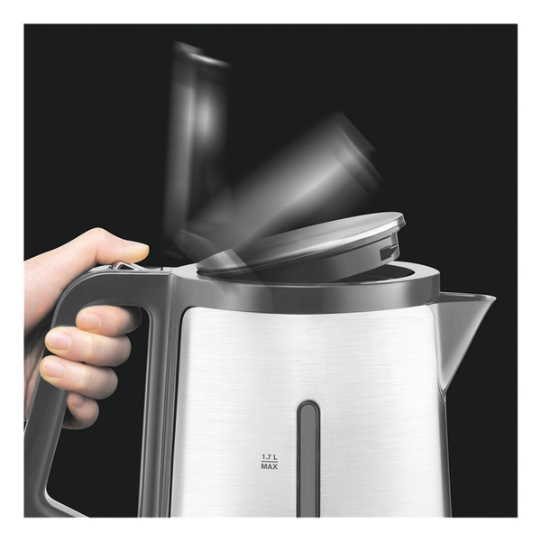 Waterkoker »Control Line« - 1,7 L, krachtige waterkoker met ergonomisch design, opgenomen vermogen: 2400 W, volume: 1,7 L, waterpeilindicatie: 2 indicators / aan de zijkant, voet: 360° draaibare voet (apparaat kan draadloos vanuit elke richting worden geplaatst), veiligheidsfuncties: automatische uitschakeling, handgreep: kunststof greep, deksel: automatische opening, bijzonderheden: uitneembaar antikalkfilter / mechanische aan-/uitschakelaar met controlelampje / snoeropbergmogelijkheid / vulbaar via de uitloop, kleur: zilver / zwart, gewicht: 1230 g, afmetingen (B/D/H): 15 / 15 / 25 cm,leveringsomvang: waterkoker / onderstel met netsnoer